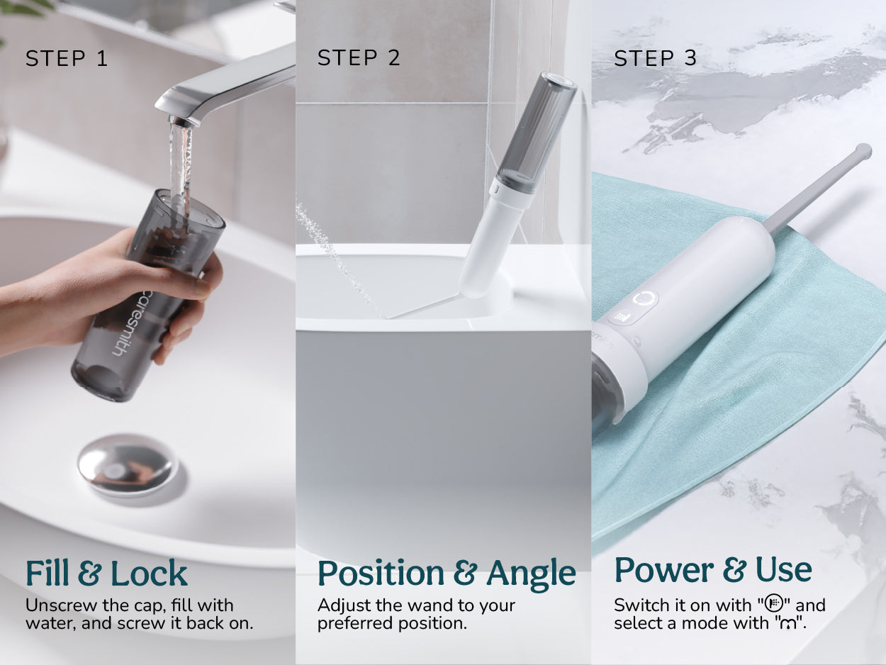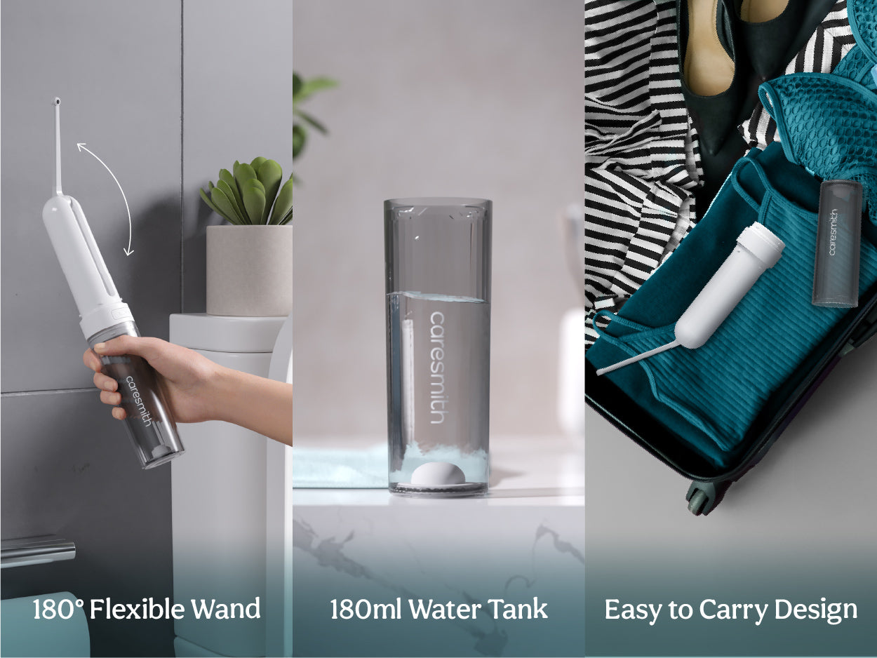 Caresmith portable bidet. Featuring 3 modes, a 180° adjustable nozzle, and a spacious 180ml tank, it ensures gentle, effective cleansing. With up to 90 minutes of battery life, hygiene is always within reach!